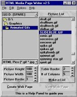 This program creates web pages using your GIF, JPG, WAV, MID, MP3, AVI, and MPG files. Choose your adjustments, click Create, and a tabled-layout page is created. If you don't like the results, change some settings and recreate it. You have full control over the image sizes, page colors, number of columns, borders, captions, file order, and more. This is the easiest way to create multimedia web pages! Includes cursor-sensitive help. No HTML knowledge needed. Use it as an MP3 player. Use it as graphics viewer. Use it to organize your hard drive. Use it to watch movies. (MPG & AVI). Click on the picture to view the screen shots and additional information. |