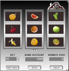 A Slot Machine game that's cute and fun. You start out with 1000 coins and if you lose it all just click Insert Coin. There are 7 different themes to choose from: Fruit, Birds, Tech, Animals, Teddys, Skulls, and Rocks. Winnings are from 1x to 10x and you can win several lines at a time, horizontally and vertically. |